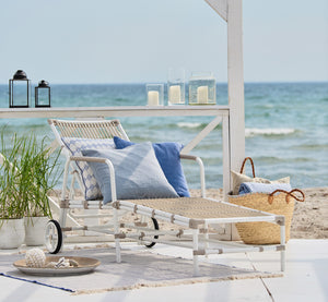 Alu-Rattan is weatherproof powder coated aluminum and ArtFibre is artificial fibers made of maintenance-free polyethylene that can withstand the sun's UV radiation. Due to the weatherproof materials, the furniture can withstand being outside throughout the year without maintenance. Due to the weatherproof materials, the chair can be used throughout the year. The fine bindings in the seat and back are made on a frame of aluminum of skilled wicker workers. Josephine contributes to a naturally beautiful element in any outdoor environment. In addition to the frame of aluminum, a cushion can be purchased, which is supplied in many different durable fabric variants manufactured in our Danish sewing room. We also offer to sew cushions in the customer's own fabric, please contact us to get enlightened about material use.