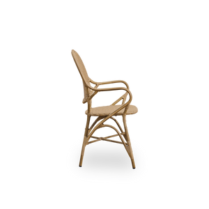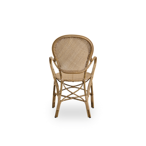 The Rossini Exterior chair is handcrafted in aluminum and ArtFibre. These materials are UV- and weather-resistant, and the furniture can therefore be left outdoor all year round.