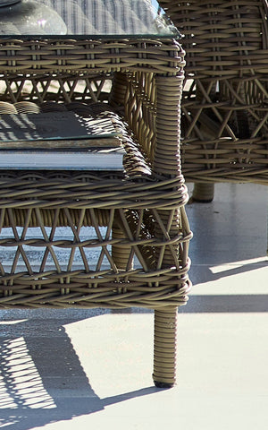 The coffee table is strong and very suitable for private use as well as for use in hotels and restaurants. It is handcrafted of aluminum and fully woven with our weather-resistant ArtFibre. The tables glass top is made from 8 mm tempered glass which makes it easy to clean and more durable than ordinary glass.