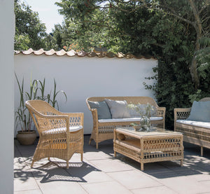 The Hazel coffee table with glass top is designed by Sika-Design and is part of our romantic Georgia Garden collection. The Georgia Garden collection is inspired by the British colonial style and by classical Danish wicker furniture.